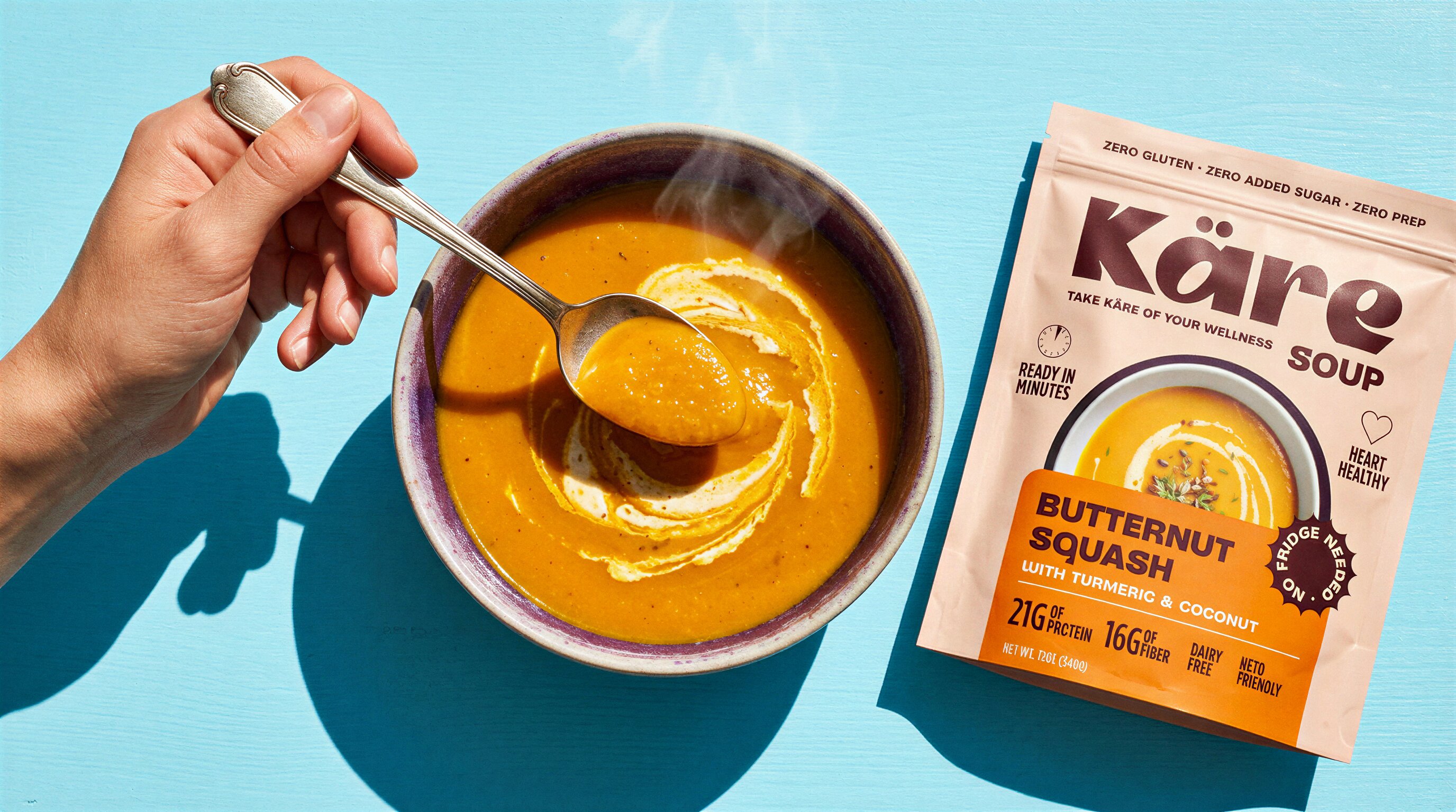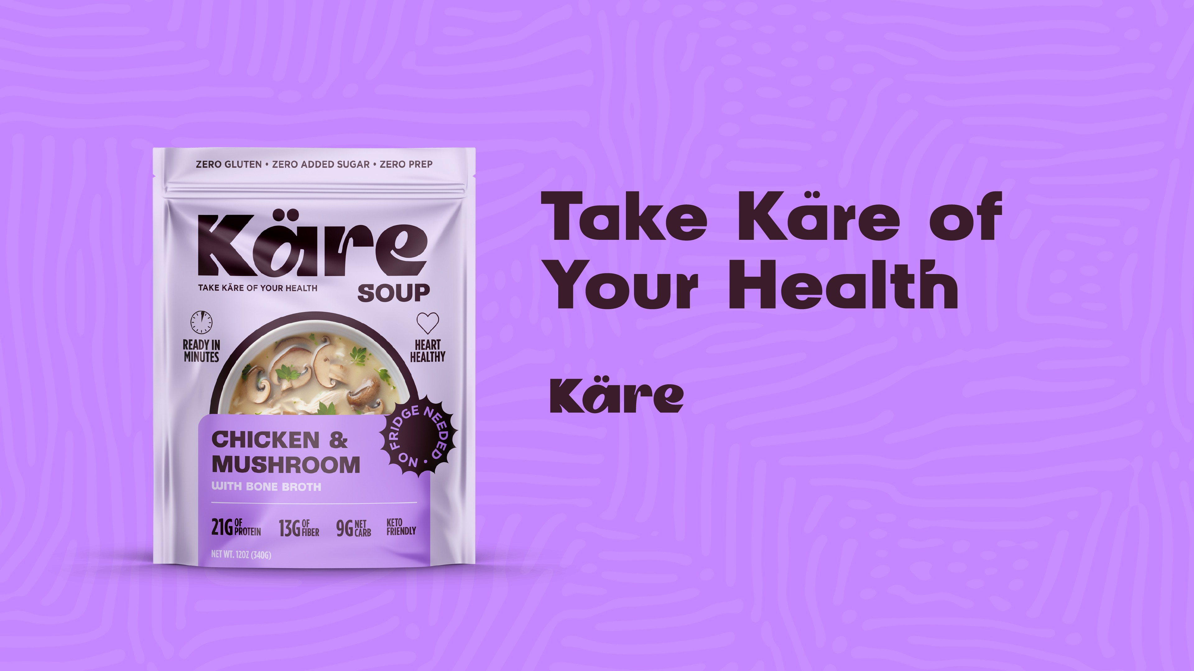 Käre is a wellness food brand positioned for the mainstream — clean ingredients, high protein, zero prep, and a product line broad enough to own an entire aisle. Meals, soups, stews, noodles, oats, and bars. I developed the brand identity and designed packaging across all six product categories.